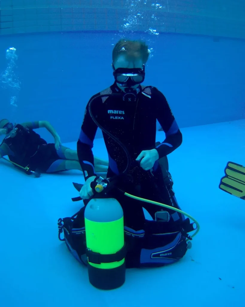 Erste Erfahrungen im Gerätetauchen gesammelt und grundlegende Abläufe unter Wasser kennengelernt.