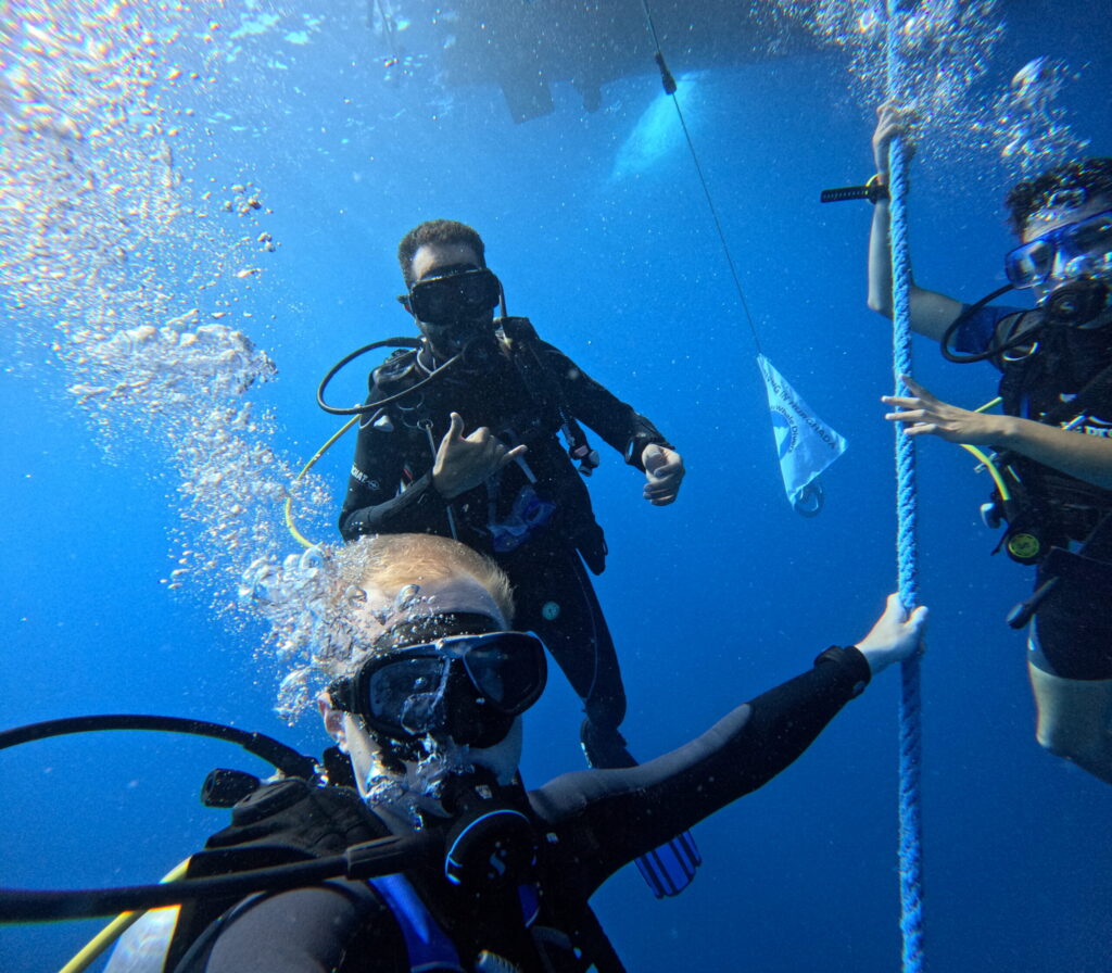 Grundausbildung im Gerätetauchen mit Fokus auf Sicherheit, Ausrüstung und eigenständige Tauchgänge.
